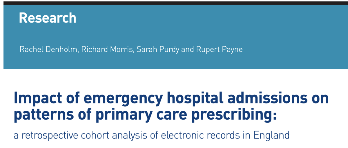 著者の知る限り、これは緊急入院後の処方の変化を調査し、病院の専門性による違いを調査し、より若い患者を含める最大の研究の1つです。病歴、すべてのプライマリケア処方(電子処方は英国では至る所にあるため)、および入院に関する詳細なデータが利用可能でした。